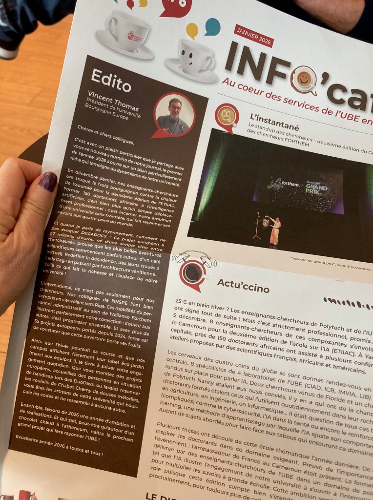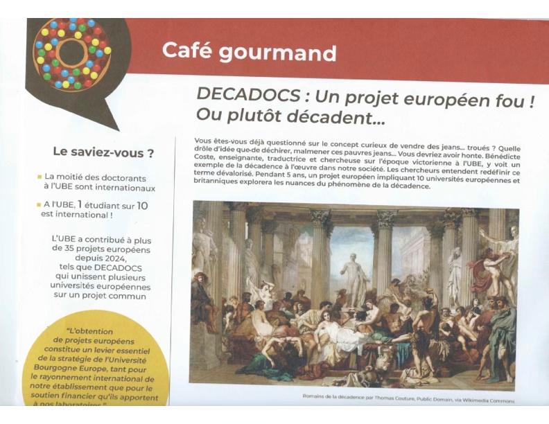 DECADOCS has just been given pride of place in Université Bourgogne Europe’s in-house magazine. Info’ Café has devoted a full page article to our project!